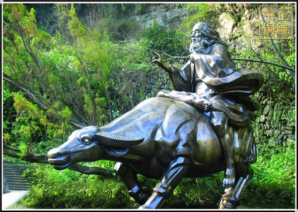 老子因騎牛西出函谷關,所以在古代人物雕塑中老子像造型多以騎牛老子像為主。老子的思想對中國古代哲學發展具有深刻影響,他的核心思想是樸素的辯證法。在政治上老子主張無為而治、不言之教。在權術上老子講究物極必反之理。在修身方面老子是道家性命雙修的始祖講究虛心實腹、不與人爭的修持理念。